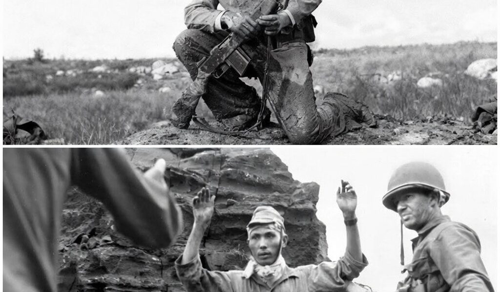 He staggered but maintained his footing, adjusting his aim toward a machine gun position that had begun firing from a cave mouth on the eastern slope. The bar’s bullets struck the cave entrance, forcing the crew to abandon their weapon and seek deeper cover within the tunnel system. Japanese soldiers in the main trench began throwing grenades and coordinated volleys, attempting to saturate Watson’s position with overlapping explosions.