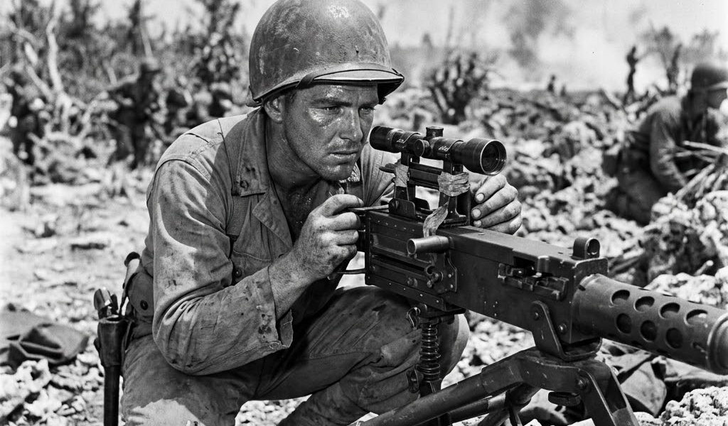Snipers who had taken 19 marine lives in just the past 48 hours from positions they thought were untouchable. His commanding officer had positioned the 84-lb M2 for area suppression, and the other platoon leaders assumed it would spray bursts at distant tree lines like every other machine gun in the Pacific. When McKver had first trained on the Browning back at Camp Pendleton, the instructor told him it was designed to stop trucks and planes, not pick off individual soldiers hiding in jungle canopy.The manual said effective range was 1,800 yd for vehicles, but everyone knew machine guns were for laying down covering fire in wide arcs, not precise shooting. His crew loaded belt after belt of 50 caliber rounds, each cartridge designed to punch through armor plating, while Japanese observers on distant ridges marked marine positions through their scopes, believing themselves invisible at ranges where no rifle could reach them. They had held these same elevated bunkers for weeks, watching American forces advance below like insects, completely confident that 1,600 yardds of jungle covered terrain made them untouchable by anything smaller than artillery.